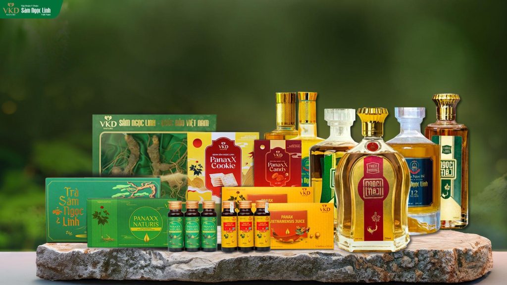 - Danh mục sản phẩm đa dạng: Tập đoàn không chỉ cung cấp sâm tươi, sâm khô mà còn phát triển nhiều dòng sản phẩm chế biến sâu như Nước cốt Sâm Ngọc Linh VKD, Cao Sâm Ngọc Linh, rượu sâm, đáp ứng nhu cầu sử dụng tiện lợi và hiệu quả cho mọi đối tượng.